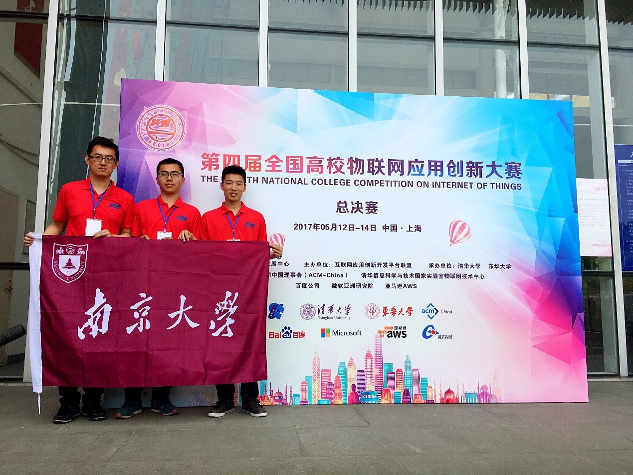 2017年5月12 – 14日,由教育部科技发展中心主办的第四届全国高校物联网应用创新大赛创意赛全国总决赛在东华大学图文信息大楼第一报告厅成功举办。我系分布式计算团队(成员:何兵兵,张柯岩,陆逸嘉;指导教师:谢磊)凭借“RF-iCare:基于RFID技术的输液监测系统”,从全国七大赛区1050只队伍中脱颖而出,获得第1名的优异成绩,夺得创意赛全国特等奖。我系团队(成员:孙珂、凌康;指导教师:戴海鹏)凭借“基于超声波的手势感知与追踪”的项目夺得总决赛第2名和一等奖(其中特等奖一名,一等奖三名,二等奖六名)。谢磊和戴海鹏作为团队指导教师分别获得最佳指导教师奖。在ACM图灵奖五十年中国大会的庆功晚宴暨赛事颁奖典礼上,图灵奖获得者、互联网之父Vinton Cerf和教育部科技发展中心李志民主任参与颁奖典礼,并颁发特等奖和最佳指导老师奖奖牌。出席者还包括图灵奖获得者John Hopcroft,ACM主席Vicki Hanson,ACM Fellow、IEEE Fellow、清华大学软件学院院长刘云浩等。此次总决赛的参赛队伍共有从七大赛区选拔出来的包括南京大学、清华大学、武汉大学、哈尔滨工业大学、华中科技大学、西安交通大学等在内的42所高校75支参赛队伍。