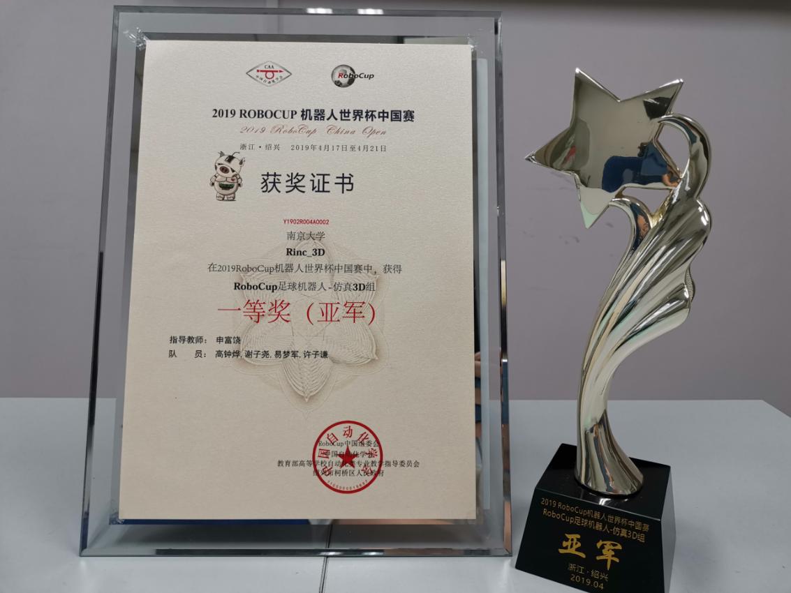 2019年4月18日-21日,2019 RoboCup机器人世界杯中国赛在浙江绍兴柯桥中国轻纺城国际会展中心举行。经过三天的激烈角逐,我系机器人智能与神经计算研究组(//llshenshe.net/rinc/index.html)的“Rinc_3D”团队(成员:高钟烨,谢子尧,易梦军,许子谦指导教师:申富饶)荣获仿真3D组一等奖(亚军)。