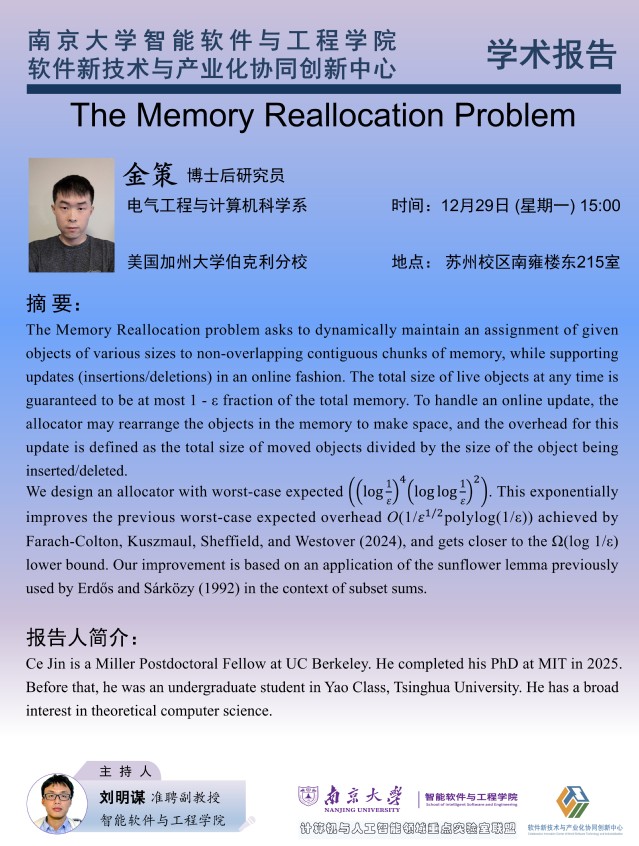 2025年12月29日“软件新技术讲坛”学术报告 - 金策 博士后研究员