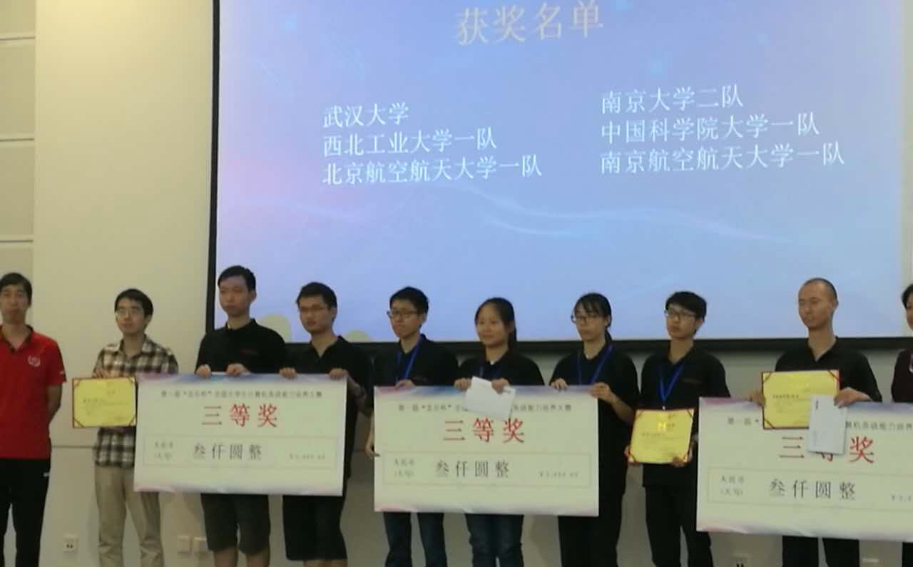9月24日,由教育部高等学校计算机类专业教学指导委员会主办的第一届“龙芯杯”全国大学生计算机系统能力培养大赛在北京航空航天大学揭晓,南京大学两个参赛队伍均获奖,分别获得第2名和第9名,各自荣获二等奖和三等奖。