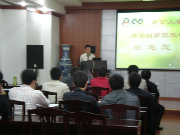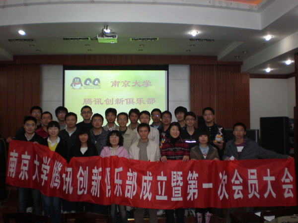 南京大学腾讯俱乐部成立暨第一次会员大会于2009年3月15日上午在蒙明伟楼109教室隆重召开,会上特邀了计算机系的党委书记赵金熙教授和计算机系研究生工作指导员高海燕老师参加。大会在一种积极向上、和谐融洽的气氛中进行。