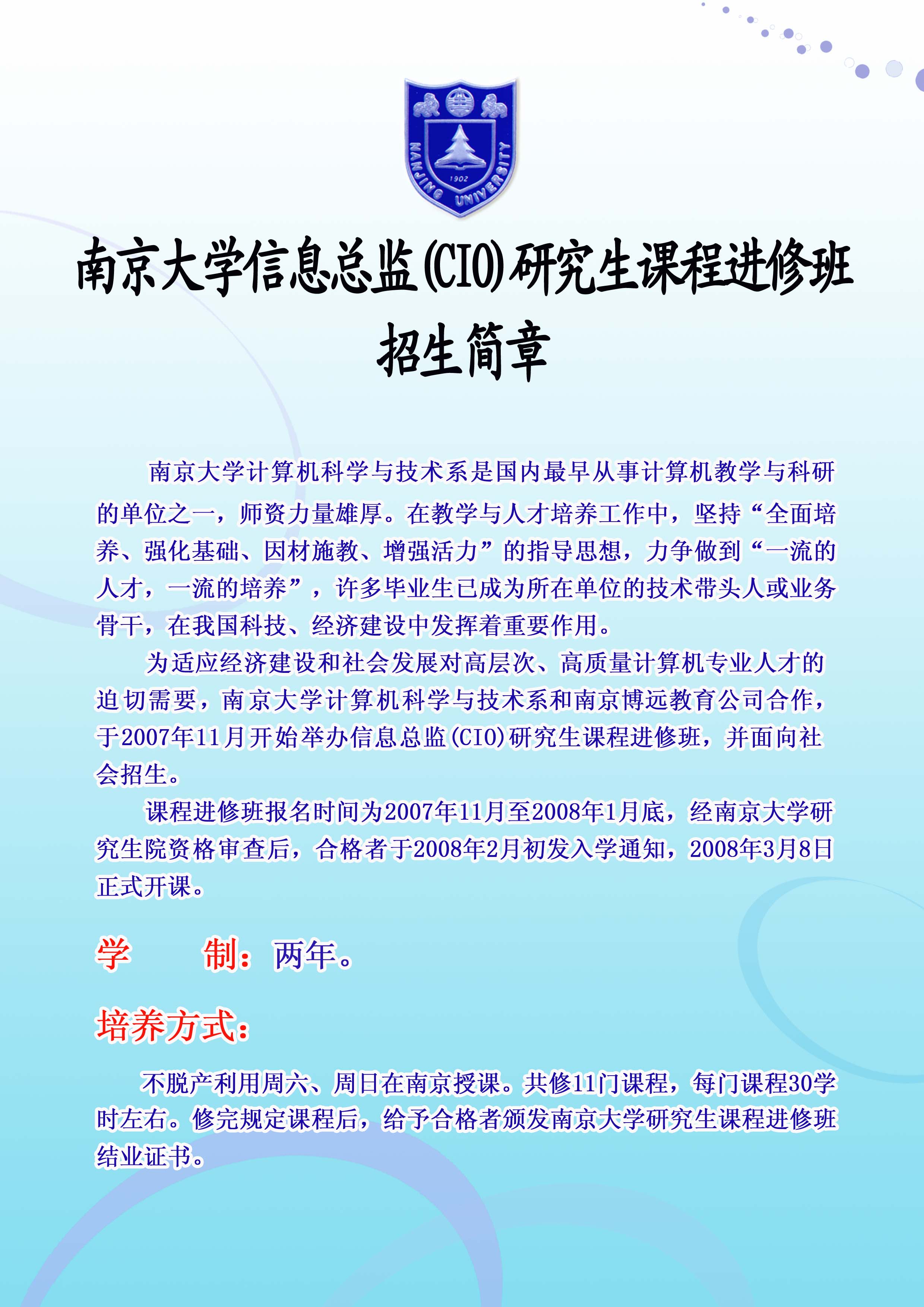 南京大学信息总监(CIO)研究生课程进修班招生简章
