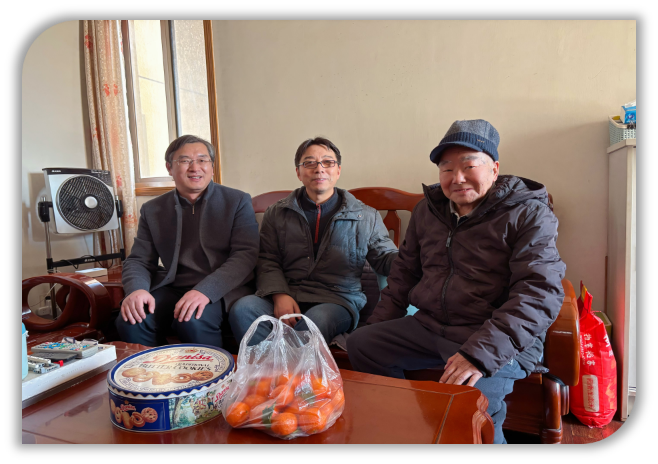 寒假前夕,慰问行动持续升温,学院聚焦退下来的原学科带头人和资深教授,依据居住片区分年度有序开展慰问。2025年1月16日,阳光破云而出,洒在龙江小区。学院党委书记武港山教授率队,副院长张剡、院办主任曹迎春等一行满怀热忱,驱车前往。本年度的慰问活动主要在龙江阳光广场住宅小区开展。首先拜访了陈道蓄教授家,门启处,温暖四溢,学院领导递上慰问信、精心准备的慰问品与慰问金,围坐而谈,细询陈教授安康,畅聊学院新貌佳绩,陈教授眼中满是欣慰,往昔奋斗点滴似在眼前重现,对学院深情溢于言表。