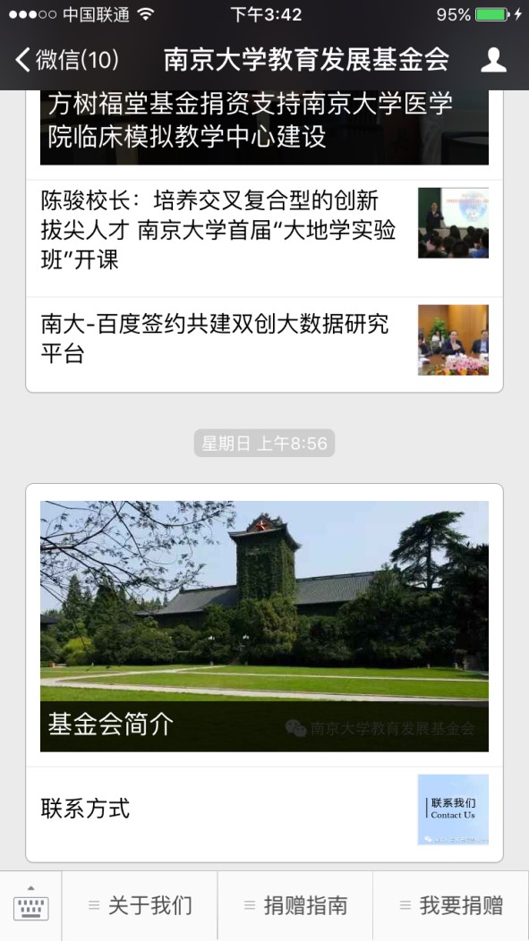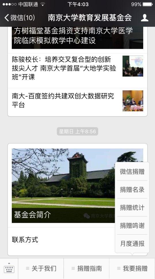(二)、进入“南京大学教育发展基金会”微信界面后,