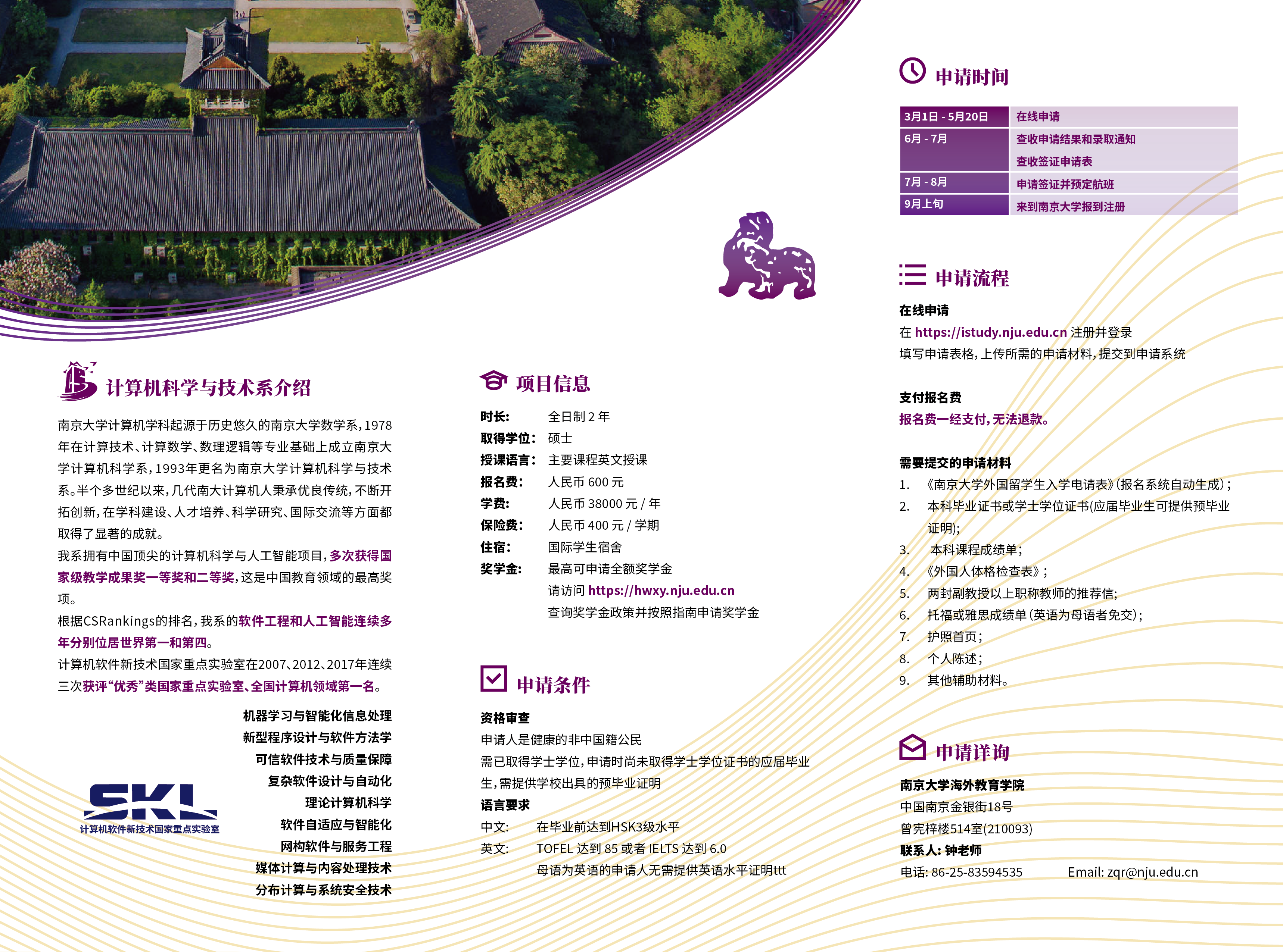 南京大学计算机技术硕士研究生(留学生)招生通知